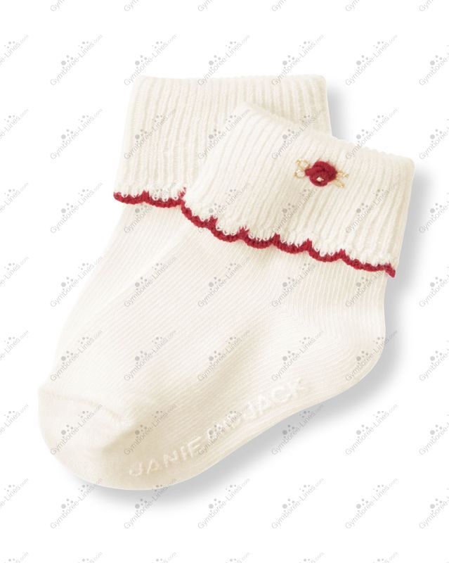 Embroidered rosette accents the ankle cuff of our comfortable sock. Contrast scalloped edge finishes the look.