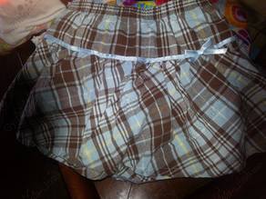 skirt plaid blue brown yellow ribbon bow Elastic Waistband