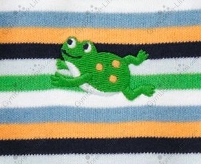 Your little baby boy looks so playful in stripes. Our soft and comfy cotton interlock bodysuit features an embroidered frog on the chest for fun detail. For sizes Up to 5 lbs - 12-18 months.