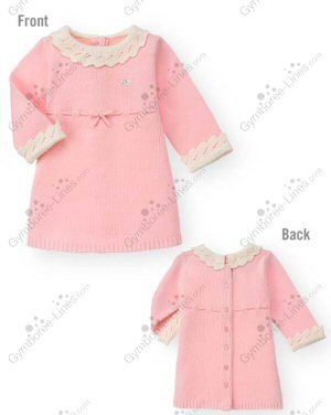 dresses - sweater dress pink lace ruffled bow tie scalloped