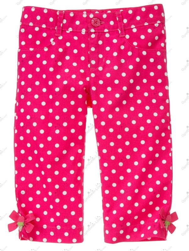 Playful polka dot print and grosgrain ribbon bow with 3-D appliquéd ice cream cone dangle at the hem vent give our crisp cotton canvas capri design a super sweet accent. Features front and back pockets.