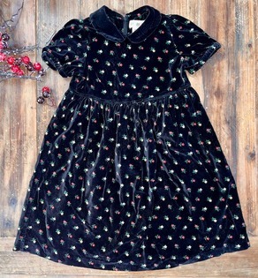 Kid Girl Dress - Black Velvet Ditsy Dress