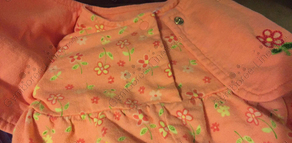 Gymboree Rainbow Tag Pastel PGYB (c) 1998 Peach Coral Pink Yellow Floral Romper One Piece Built in Jacket Embroidered Embroidery Flowers Enamel Snaps Long Sleeves Photo Credit Val Morrison Smith Photo Credit Joan Thompson