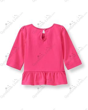 Top Shirt Three Quarter Sleeve 3/4 Sleeves Double Button Ruffle Hem Keyhole Button