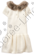 Dress Sweater Faux Fur Collar Textured Button Back Cable Knit Short Sleeve