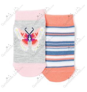 Socks Set of 2 Knit Elastic Cuff Striped Butterfly Gray Blue Pink White Coral