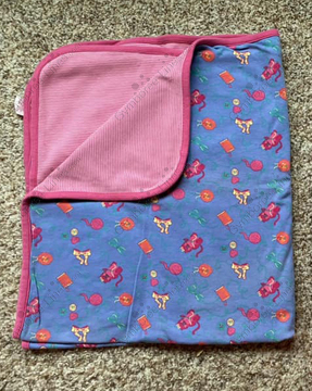 Gymboree Rainbow Tag PBYG No Date RN# AND CA# Blanket Reversible Pink Stripe Novelty Print Sewing Measuring Tape Cloth Tape Measure Bow Scissors Cats Kitties Kitty Kittens Buttons Ball of Yarn Needle and Thread Spool Pin Cushion Photos Credit Liza Jane Additional Photos Credit Joanna Nibra Additional Photo Sue Kauffman Campbell