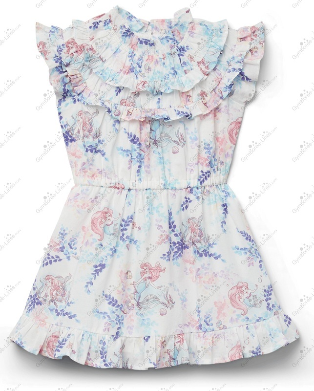 Dress Short Sleeve Flutter Sleeve Floral Flower Disney Ariel Ruffled Hem Ruffled Collar Button Black Bloomers Diaper Cover Mermaid