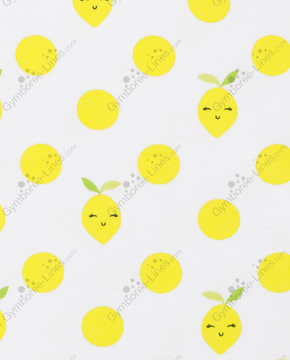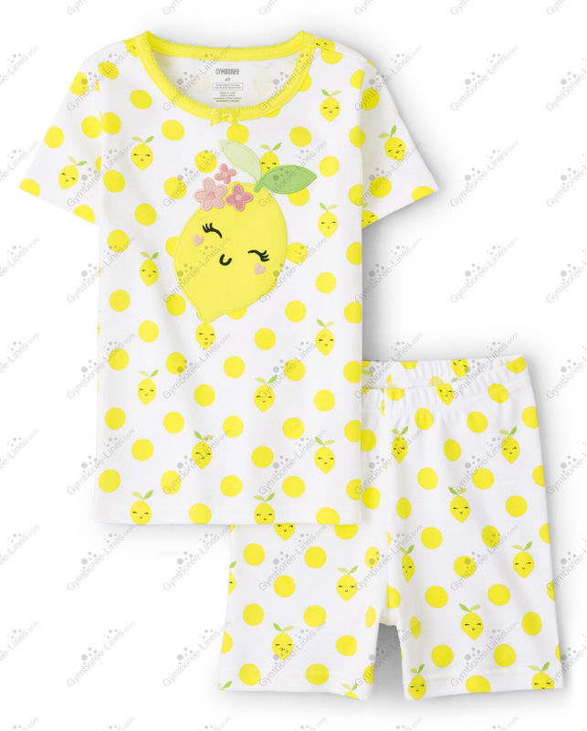 Gymboree Allover Print Polka Dots Lemons Faces Applique Embroidered Lemon Flowers Leaves Face White Yellow Contrast Trim Picot Edging Satin Bow Shortie Short Sleeves Gymmies Pajamas Set