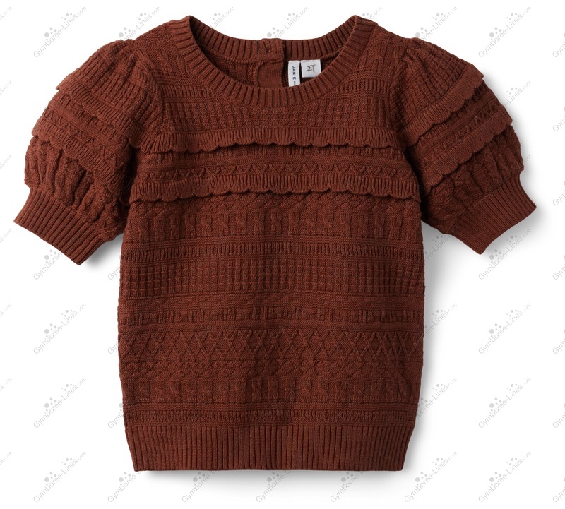 Top Sweater Short Sleeves Scalloped Button Back Tween Cable Knit