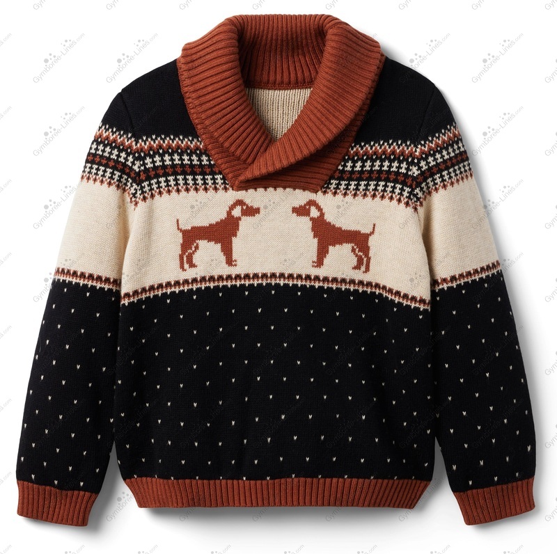 Sweater Top Pullover Shawl Collar Shawl Neck Doggy Puppy Fair Isle Festive Holiday Winter Christmas Long Sleeve