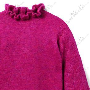 Top Ruffled Ruffled Neck Mock Turtleneck Ruffled Banded Sleeve Long Sleeves Winter Holiday Christmas Tween Pointelle Diamond Pattern