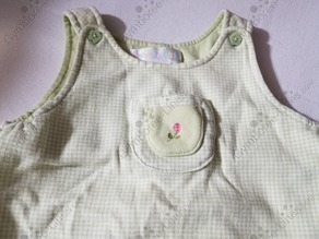Gymboree Rainbow Tag Pastel PGYB c1998 Green Gingham Bubble Romper Flower Buttons Front Bib Pocket Embroidered Rosebud Rose Photo Credit Julie John Dowd