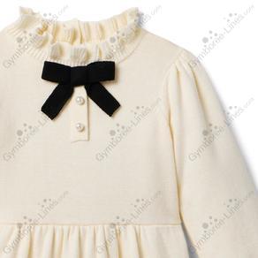 Dress Long Sleeve Balloon Sleeve Bow Ruffled Neck Ruffled Collar Shirred Elastic Ruffled Sleeve Ruffled Hem Sweater Winter Holiday Christmas Photos Pictures Button Back