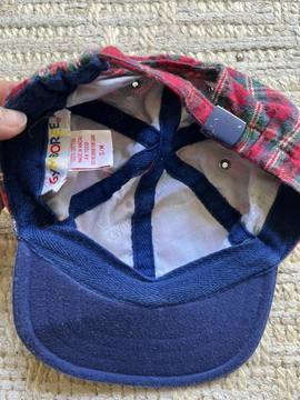 Gymboree Rainbow Tag RBYG No Date RN# ONLY Red Plaid Hat Cap Navy Blue Brim Adjustable Buckle Strap Photo Credit Chelsea Ford