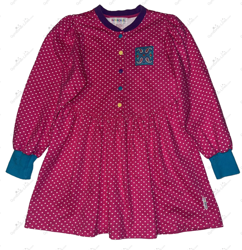Gymboree Rainbow Tag PBYG No Date RN# ONLY Magenta Pink Long Sleeves Dress Polka Hearts Heart Polkadots Purple Contrast Collar Ringer Teal Green Grow Cuffs Yellow Enamel Snaps 3Dot Paisleys Flowers Chest Patch Photo credit Amber Leigh