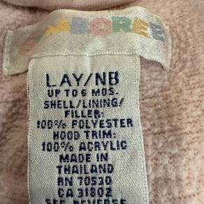 Gymboree Rainbow Tag Pastel PGYB c1998 Pastel Pink Bunting Snowsuit Grow Cuffs Footed Polka Dot Lining Embroidered Needlework Snowflakes Photos Credit Amanda Lehman