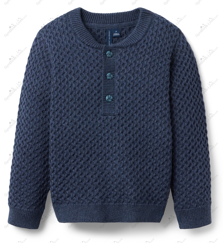 Top Sweater Long Sleeve Pullover Textured Button Placket Basic Back To School Uniform