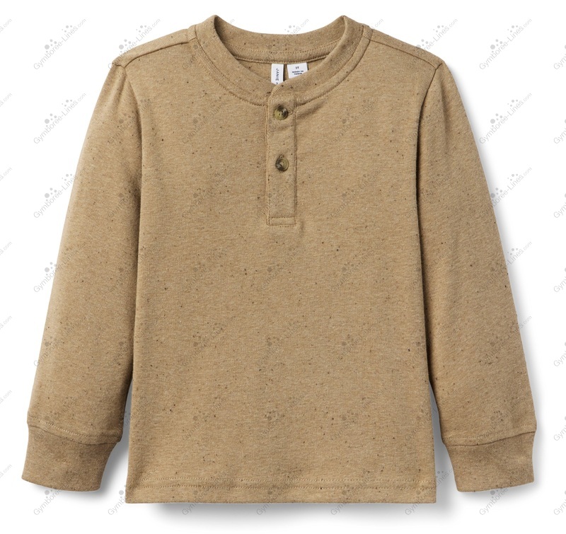 Top Shirt Tee Long Sleeve Henley Button Placket Speckled Natural