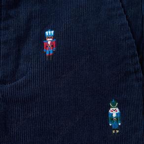 Pants Corduroy Embroidery Nutcracker Zipper Button Closure Adjustable Waist Pockets Winter Christmas Holiday