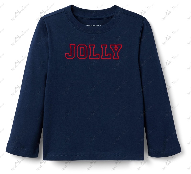 Top Shirt Tee Long Sleeves Jolly Christmas Holiday Winter Embroidered