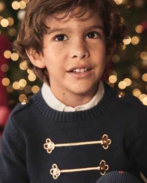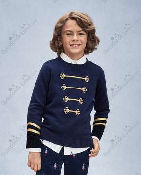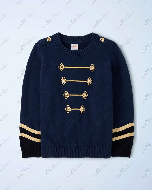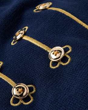 Gymboree TCP Navy Blue Sweater Long Sleeves Gold Tone Buttons Braided Trim Epaulettes Metallic Gold Embroidery Embroidered Tidal Blue