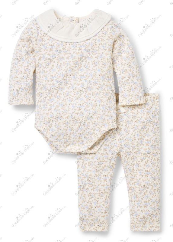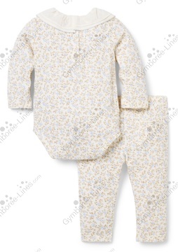 Two Piece 2 Piece Long Sleeves Ruffled Collar Lace Collar Pants Elastic Waistband Onesie Bodysuit Snap Crotch Flower Floral