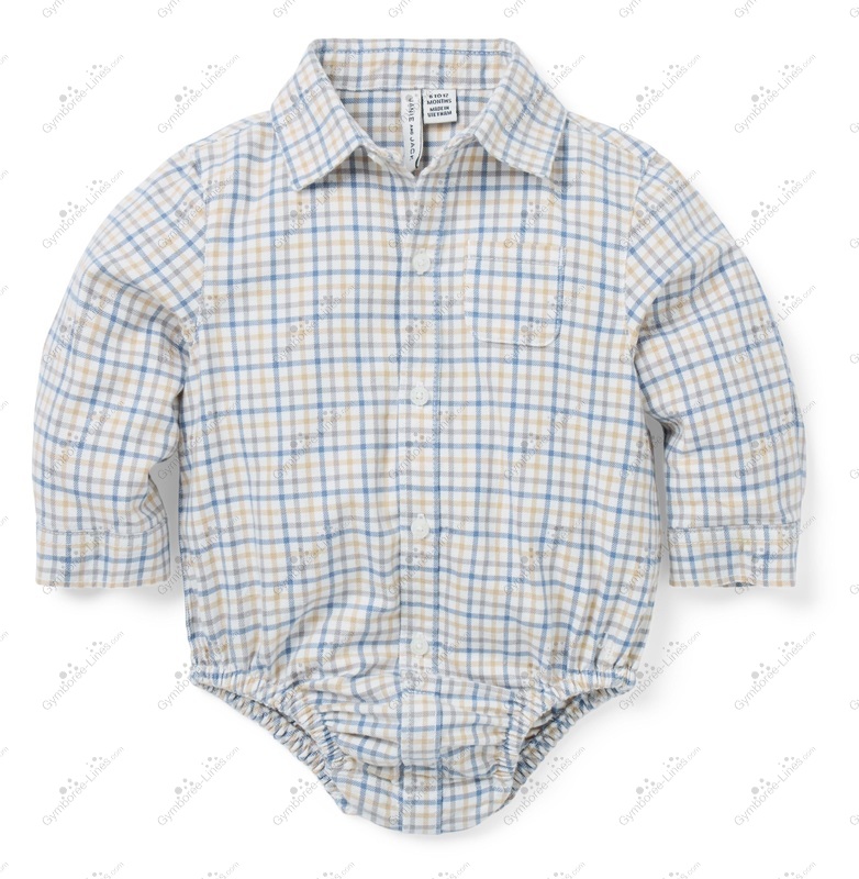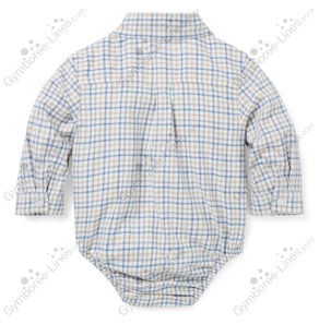 Top Shirt Bodysuit Onesie Gingham Flannel Plaid Collar Pocket Long Sleeves