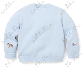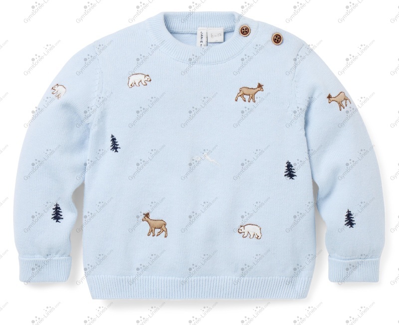 Top Sweater Long Sleeves Deer Polar Bear Pullover Woodland Button Collar Button Neck Embroidered