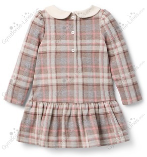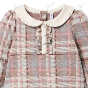 Dress Long Sleeve Plaid Peter Pan Collar Peterpan Collar Ruffled Placket Shirred Jacquard Drop Waist Button Back Bloomers Diaper Cover