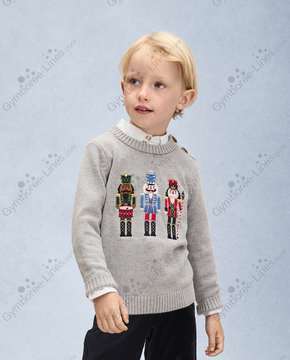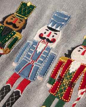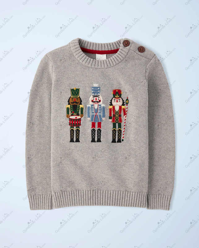Gymboree TCP Gray Sweater Shoulder Buttons Applique Embroidery Embroidered Nutcrackers Crewneck Long Sleeves Heather Grey H/T Smoke