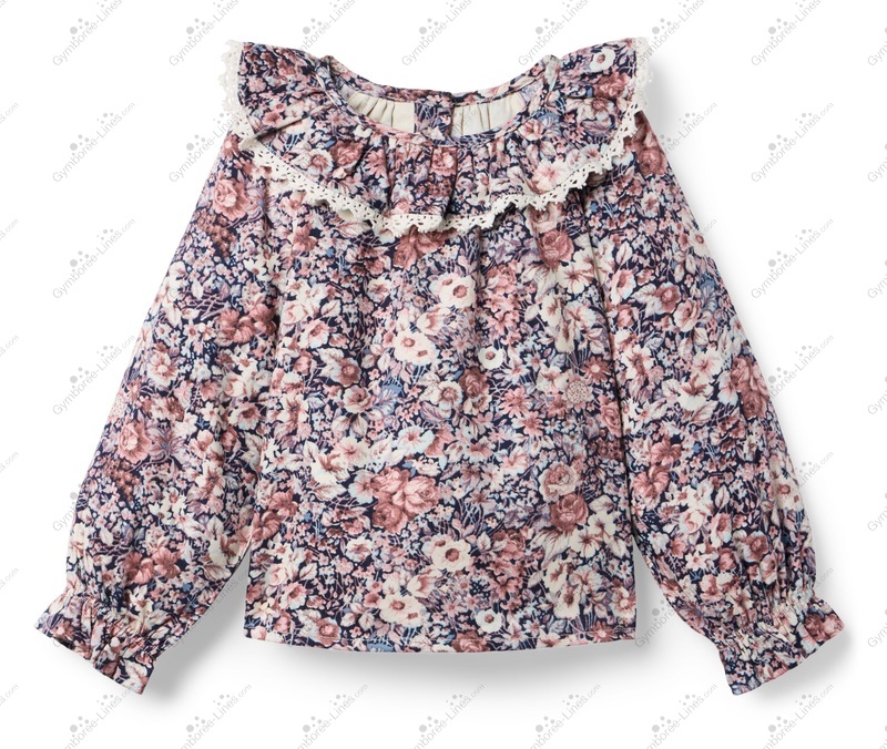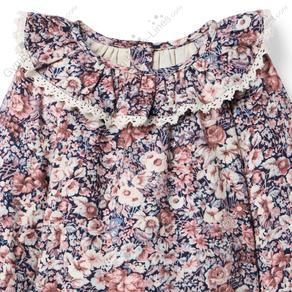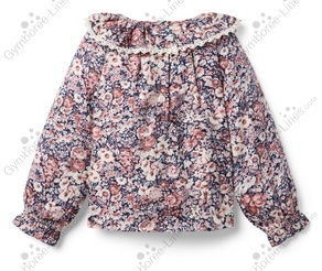 Top Shirt Blouse Long Sleeve Floral Flower Ruffled Collar Button Back