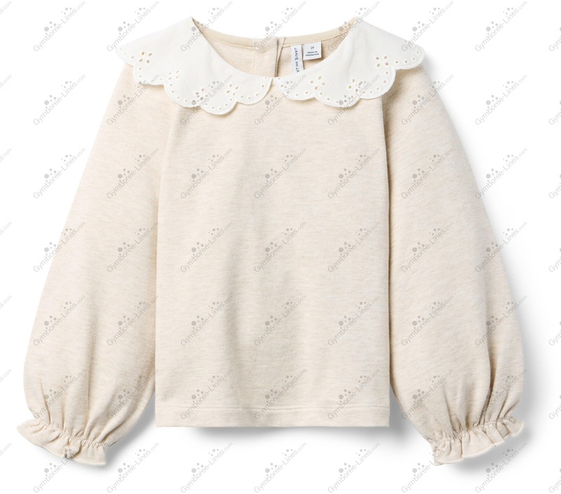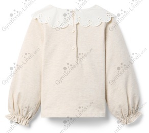 Top Sweater Long Sleeve Collar Eyelet Lace Collar Scalloped Collar Sweatshirt Button Back Balloon Sleeve Elastic Ruffled Sleeve