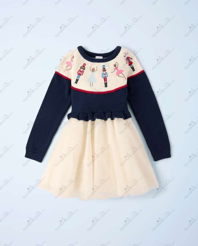 Gymboree TCP Tidal Blue Navy Sweater Dress Long Raglan Sleeves Ivory Cream Winter White Mesh Skirt Silver Glitter Applique Nutcrackers Ballerinas Embroidery Embroidered Red Pink Baby Blue Bluestone White Metallic Silver Mouse King