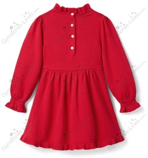 Dress Long Sleeve Ruffled Collar Button Front Shirred Waist Winter Christmas Holiday Button Back Bow Elasticized Ruffle Sleeves