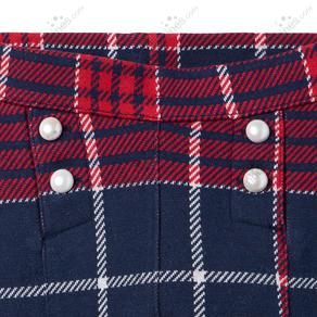Pants Pull On Leggings Tartan Pearlized Buttons Slim Button Plaid Jacquard