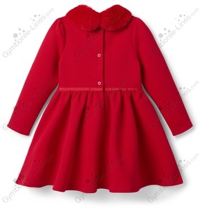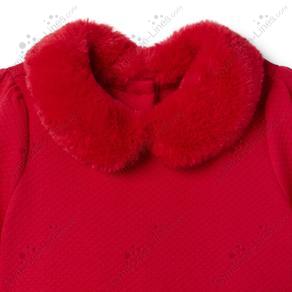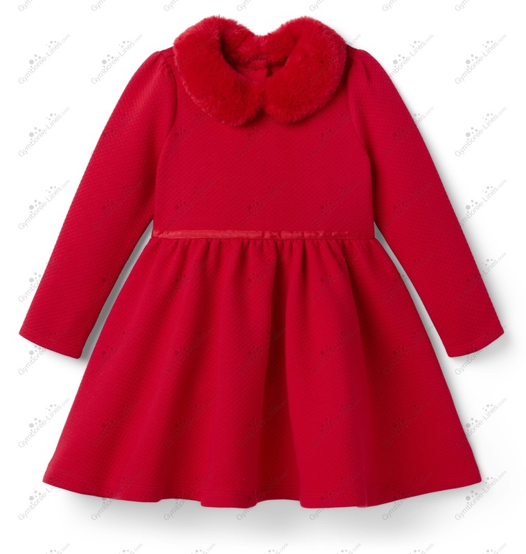Dress Long Sleeve Button Back Faux Fur Collar Shirred Quilted Bloomers Diaper Cover Grosgrain Ribbon Winter Christmas Holiday