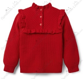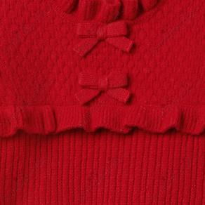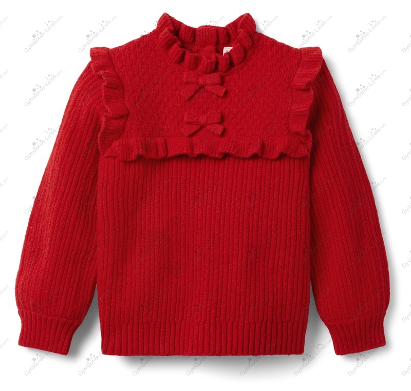 Top Sweater Long Sleeve Ruffled Collar Button Back Bow Ribbed Textured Winter Christmas Holiday