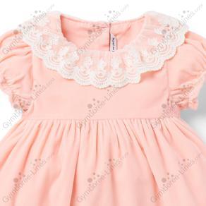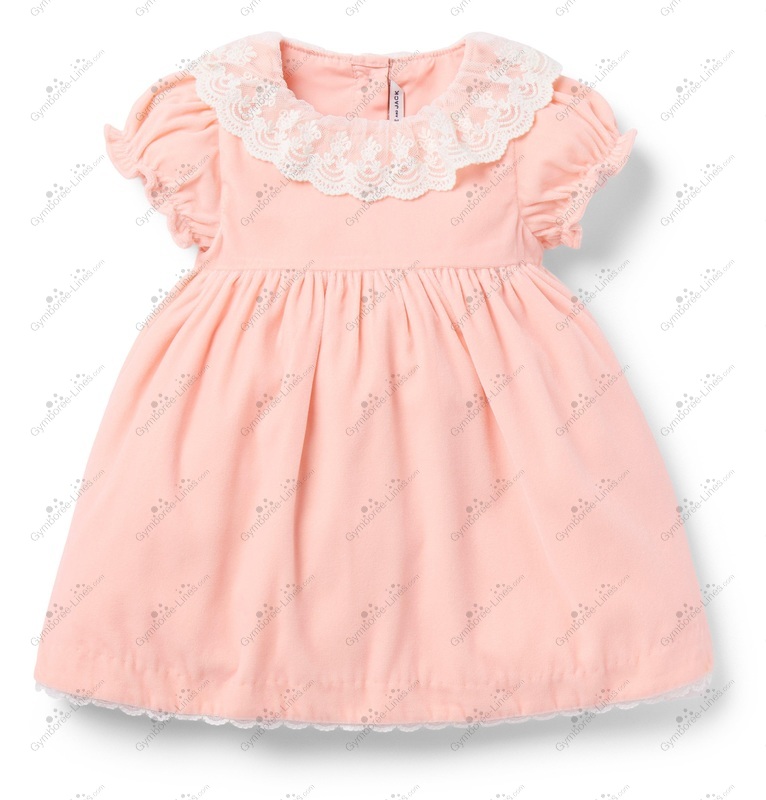 Dress Short Sleeve Lace Collar Button Back Elastic Ruffled Sleeve Shirred Velvet Velveteen