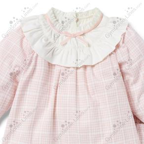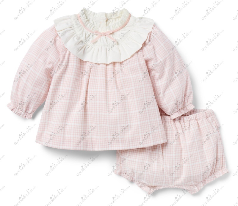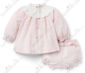 Two Piece Set 2 Piece Set Long Sleeve Ruffled Collar Button Back Windowpane Plaid Bloomers Diaper Cover Shorts Velvet Bow Elastic Waistband
