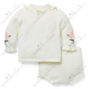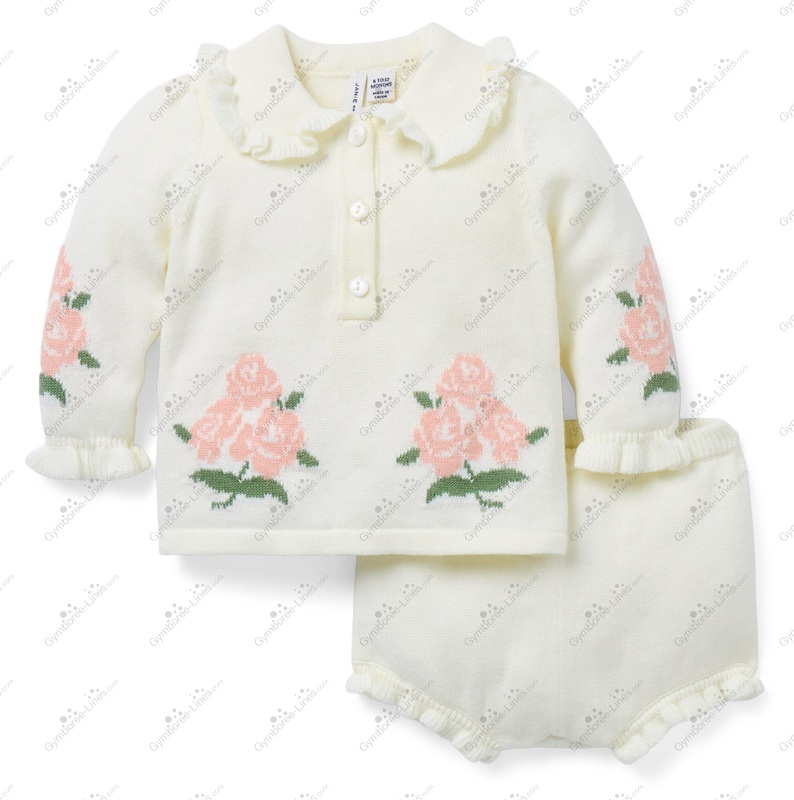 Two Piece 2 Piece Top Sweater Long Sleeve Collar Floral Flower Rose Set Shorts Diaper Cover Bloomers Half Button Placket Ruffled Collar Ruffle Trim