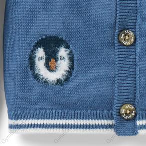 Top Sweater Long Sleeve Cardigan Penguin Button Up Tipped Winter Holiday Christmas