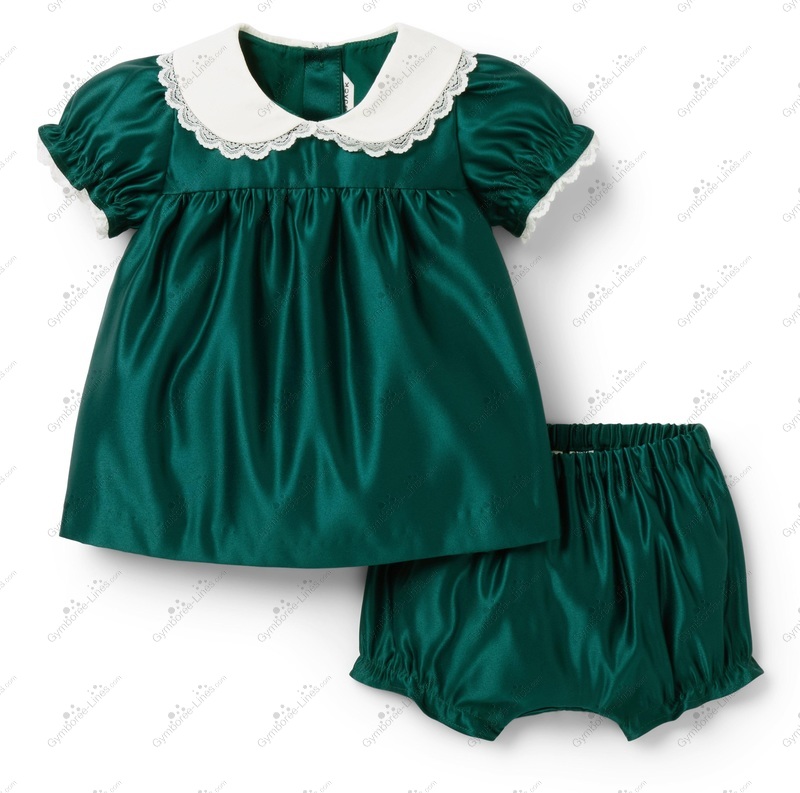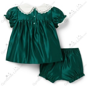 Two Piece 2 Piece Short Sleeve Peterpan Collar Peter Pan Collar Collar Bloomers Diaper Cover Shorts Elastic Waistband Shirred Satin Winter Holiday Christmas