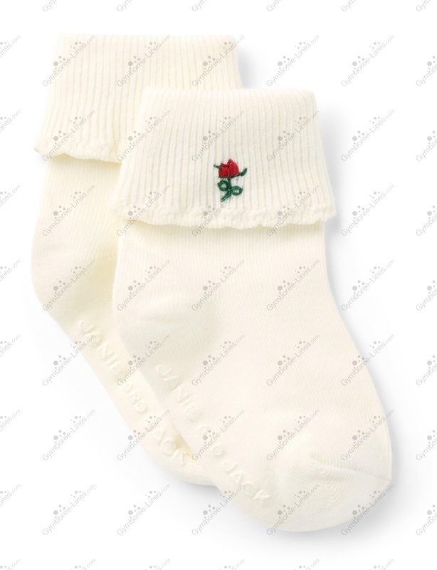 Socks Cuffed Foldover Rose Embroidered Flower Floral