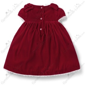 Dress Short Sleeve Button Back Velvet Velveteen Lace Trim Bloomers Diaper Cover Shirred Holiday Winter Christmas Bow