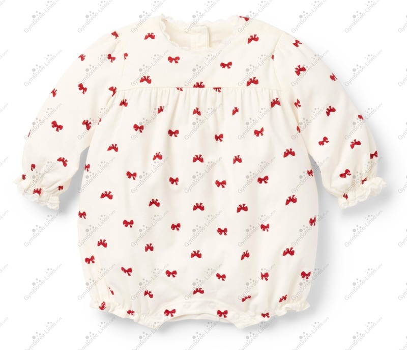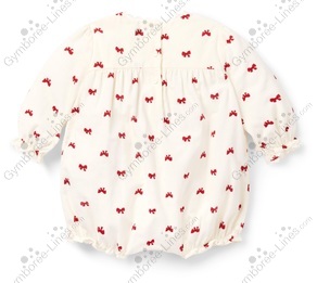 One Piece 1 Piece Romper Long Sleeve Button Back Bow Winter Holiday Christmas Snap Crotch Corduroy Elastic Ruffled Sleeve Bubble