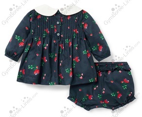 Dress Long Sleeve Two Piece 2 Piece Bloomers Diaper Cover Floral Flower Pintucked Pleated Elastic Waistband Holiday Winter Christmas