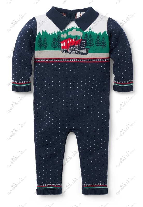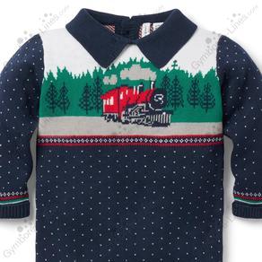 One Piece 1 Piece Long Sleeve Sweater Collar Button Back Leg Snap Snap Crotch Fair Isle Train Winter Christmas Holiday Pants Romper