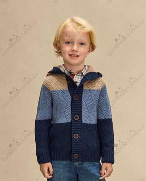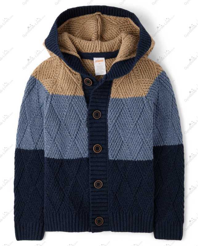 Gymboree TCP Diagonal Basket Weave Knit Texture Sweater Knit Colorblock Tidal Blue - Navy H/T Blue Spruce - Heathered Tan Long Sleeves Hooded Cardigan Hoodie Button Front