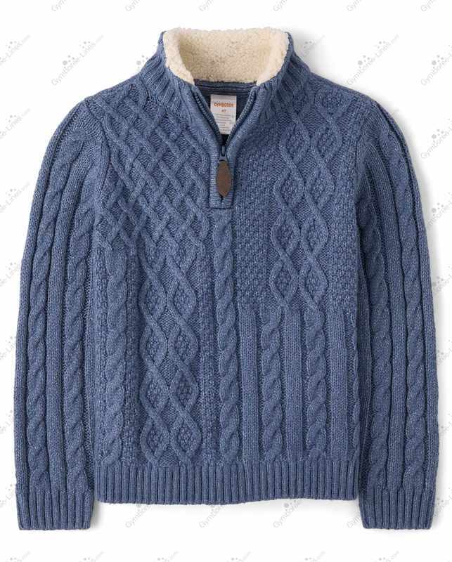 Gymboree TCP Blue Spruce Sweater Knit Patchwork Cable Pullover Quarter Zip Sherpa Lined Neck